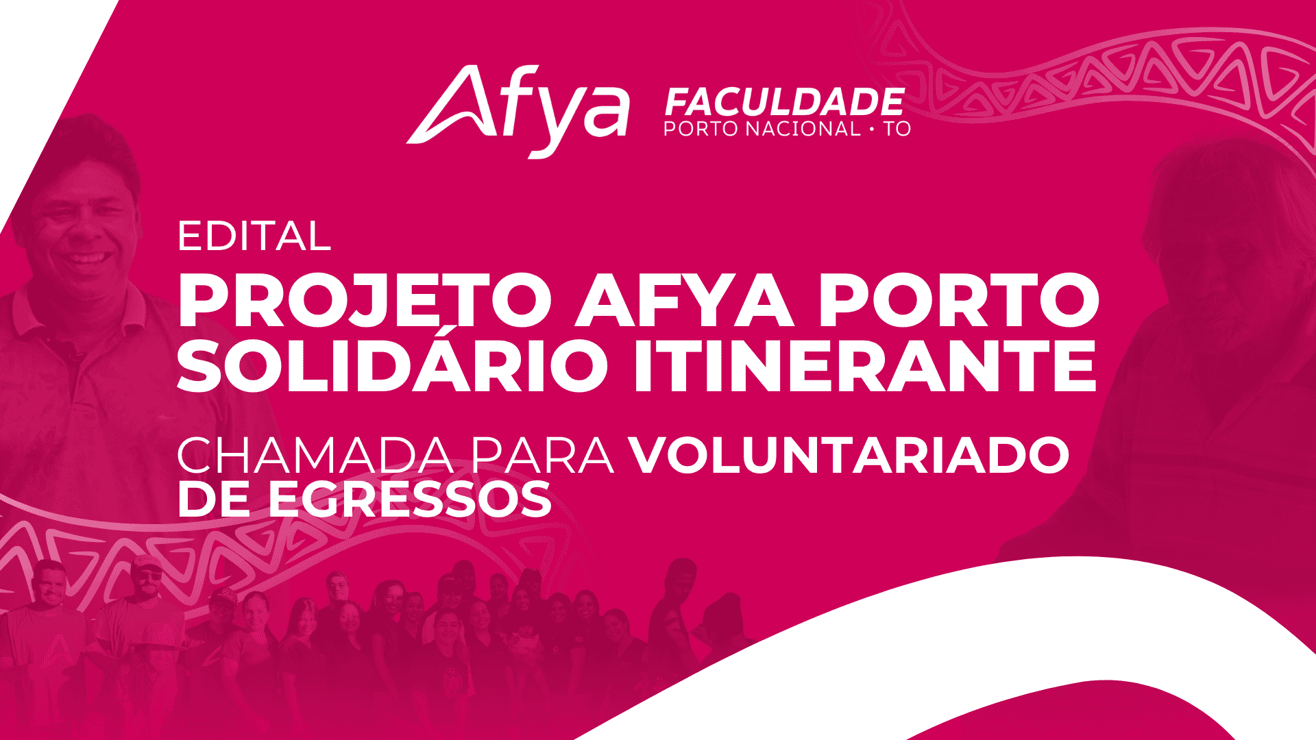 A coordenação do Projeto Afya Porto Solidário Itinerante (antigo ITPAC Porto Solidário Itinerante) torna pública a abertura de inscrições para a seleção de Egressos interessados em atuar como profissionais voluntários na 6ª Edição do projeto. A ação tem como propósito oferecer atendimentos gratuitos em diversas áreas da saúde e agrárias para comunidades em situação de vulnerabilidade.